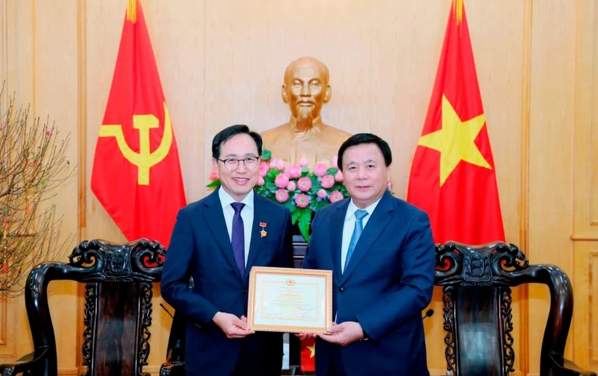 Nhân dịp này, Giám đốc Học viện Chính trị quốc gia Hồ Chí Minh Nguyễn Xuân Thắng đã trao kỷ niệm chương “Vì sự nghiệp đào tạo, bồi dưỡng lý luận chính trị của Học viện Chính trị quốc gia Hồ Chí Minh” cho ông Choi Joo Ho, Tổng Giám đốc Tổ hợp Samsung Việt Nam.