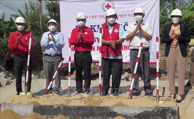 Ảnh: Lãnh đạo Hội Chữ thập đỏ và chính quyền địa phương thực hiện nghi thức khởi công “Nhà chữ thập đỏ". Ảnh: TTXVN |