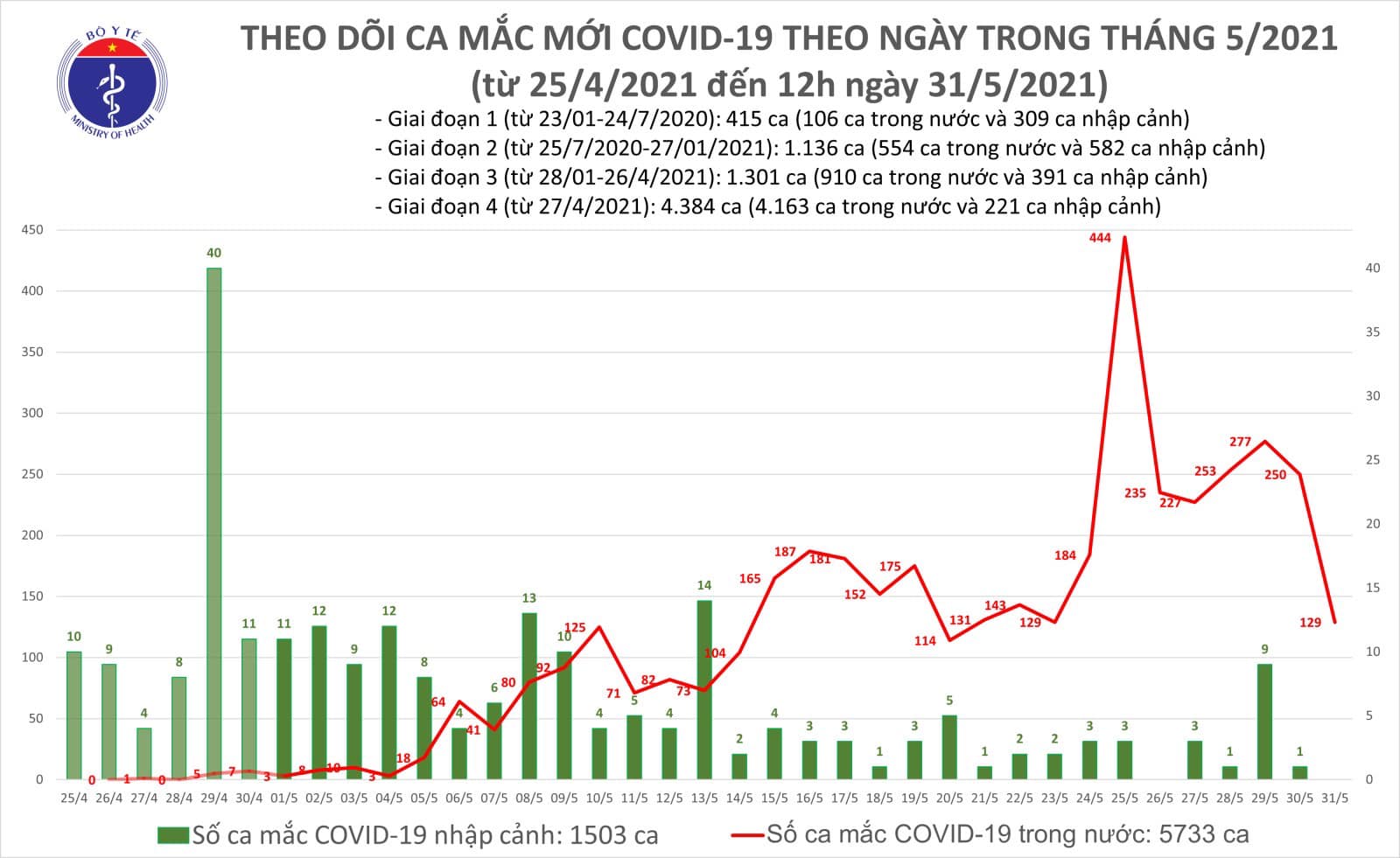 Tính từ 6h đến 12h ngày 31/5 có 68 ca mắc mới (BN7169-7236):