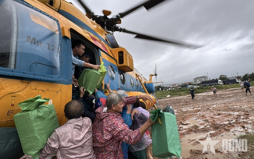 (VOV5) - Chiều 22-11, các trực thăng của Trung đoàn Không quân trực thăng 917 (Sư đoàn Không quân 370, Quân chủng Phòng không - Không quân) đã cất cánh bay vào "rốn lũ" phường Hòa Xuân, Đắk Lắk (Phú Yên trước đây) để mang nhu yếu phẩm hỗ trợ người dân đang bị cô lập.
