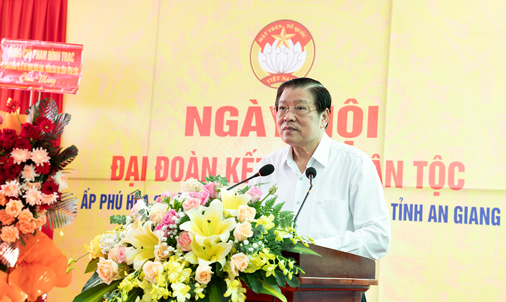 Trưởng ban Nội chính Trung ương Phan Đình Trạc phát biểu tại ngày hội Đại đoàn kết toàn dân tộc tại An Giang. Ảnh: Trung Hiếu - Duy Anh baoangiang.com.vn |