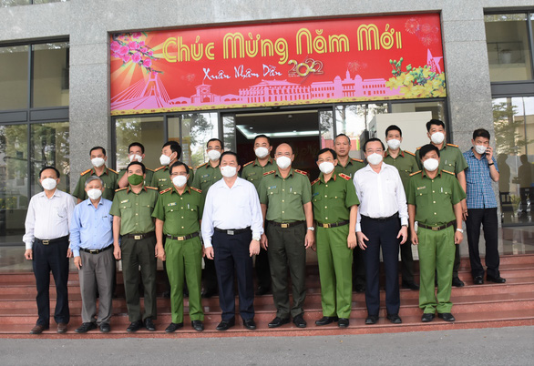 Trưởng ban Tuyên giáo Trung ương Nguyễn Trọng Nghĩa chụp ảnh lưu niệm cùng với cán bộ lãnh đạo Công an TP.HCM. Ảnh: tuoitre.vn |