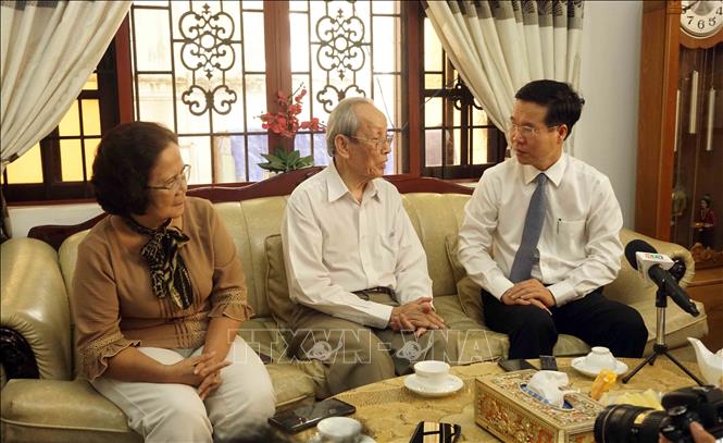 Nhân ngày Nhà giáo Việt Nam 20/11, Trưởng ban Tuyên giáo Trung ương Võ Văn Thưởng đến thăm, chúc mừng Giáo sư, Tiến sĩ Trần Hồng Quân, nguyên Bộ trưởng Bộ Giáo dục và Đào tạo, Chủ tịch Hiệp hội các trường đại học, cao đẳng Việt Nam.