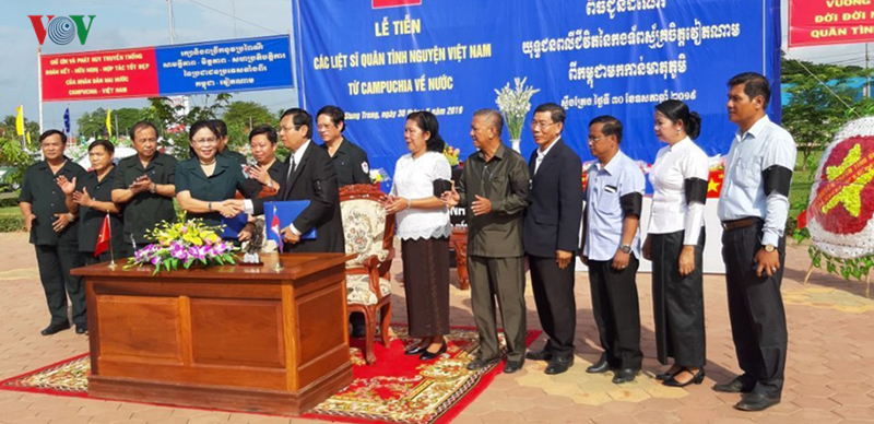 Tại buổi lễ, Trung tướng Tép Ruôn, Phó Tư lệnh Quân khu IV, Quân đội Hoàng gia Campuchia bày tỏ niềm xúc động khi được cùng đưa hài cốt các liệt sỹ, quân tình nguyện Việt Nam trở về đất mẹ.