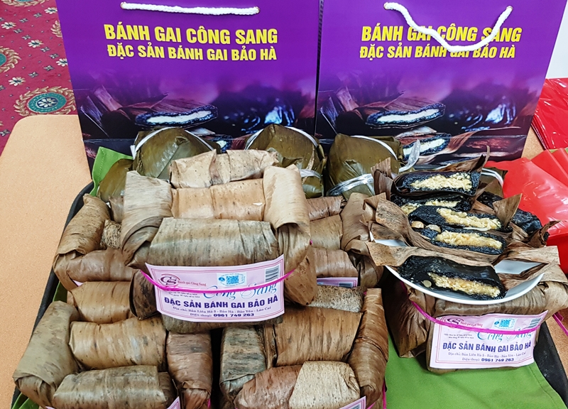 Các sản phẩm được giới thiệu, gồm: bánh gai, trà viên hoa cúc mật ong, trà viên thảo mộc Vạn an…