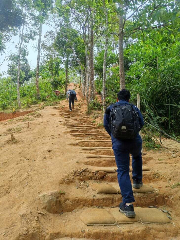Các bậc thang bằng bao cát được xây dựng tại địa điểm khai quật giúp các thành viên nhóm MIA di chuyển an toàn, đặc biệt là trong thời tiết mưa |