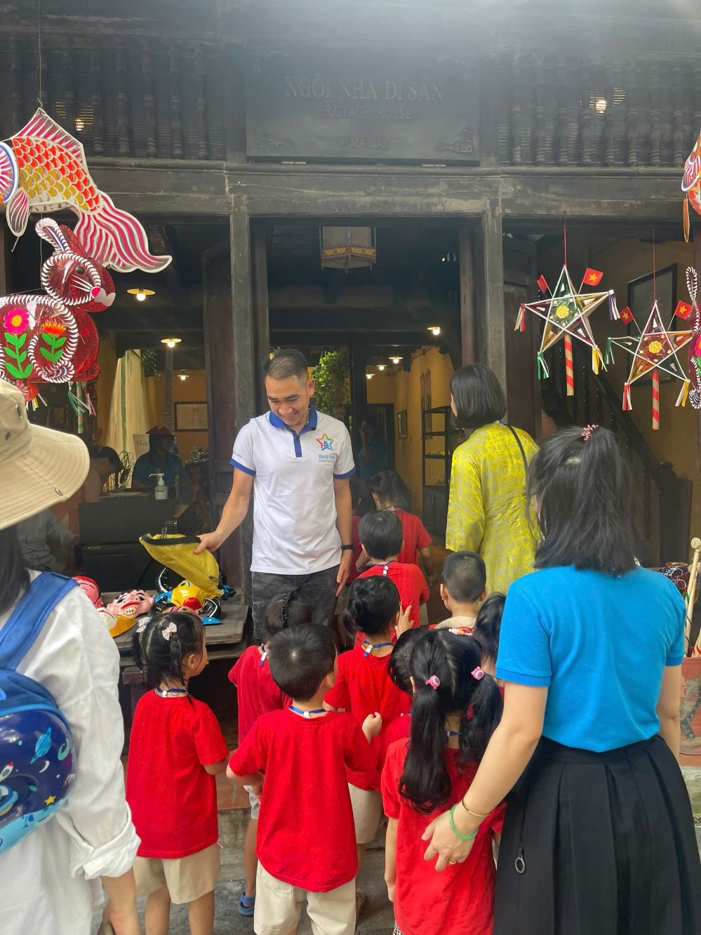 Ảnh trẻ em tham quan ngôi nhà di sản số 87 phố Mã Mây. Ảnh: Ngọc Anh |