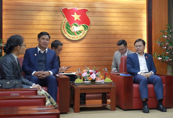 Nhân dịp tham dự Hội nghị Ủy ban liên Chính phủ Việt Nam – Lào lần thứ 44 tại Việt Nam, chiều ngày 9/01, tại Hà Nội, Bí thư thứ nhất Trung ương Đoàn TNCS Hồ Chí Minh Nguyễn Anh Tuấn tiếp Bí thư Trung ương Đoàn TNNDCM Lào ALunSay SunNaLat.