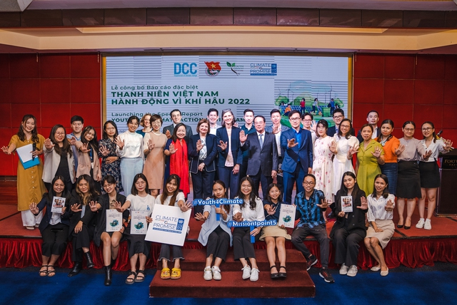 Chụp ảnh lưu niệm tại lễ công bố Báo cáo đặc biệt Thanh nhiên Việt Nam hành động vì khí hậu 2022. Ảnh UNDP cung cấp |