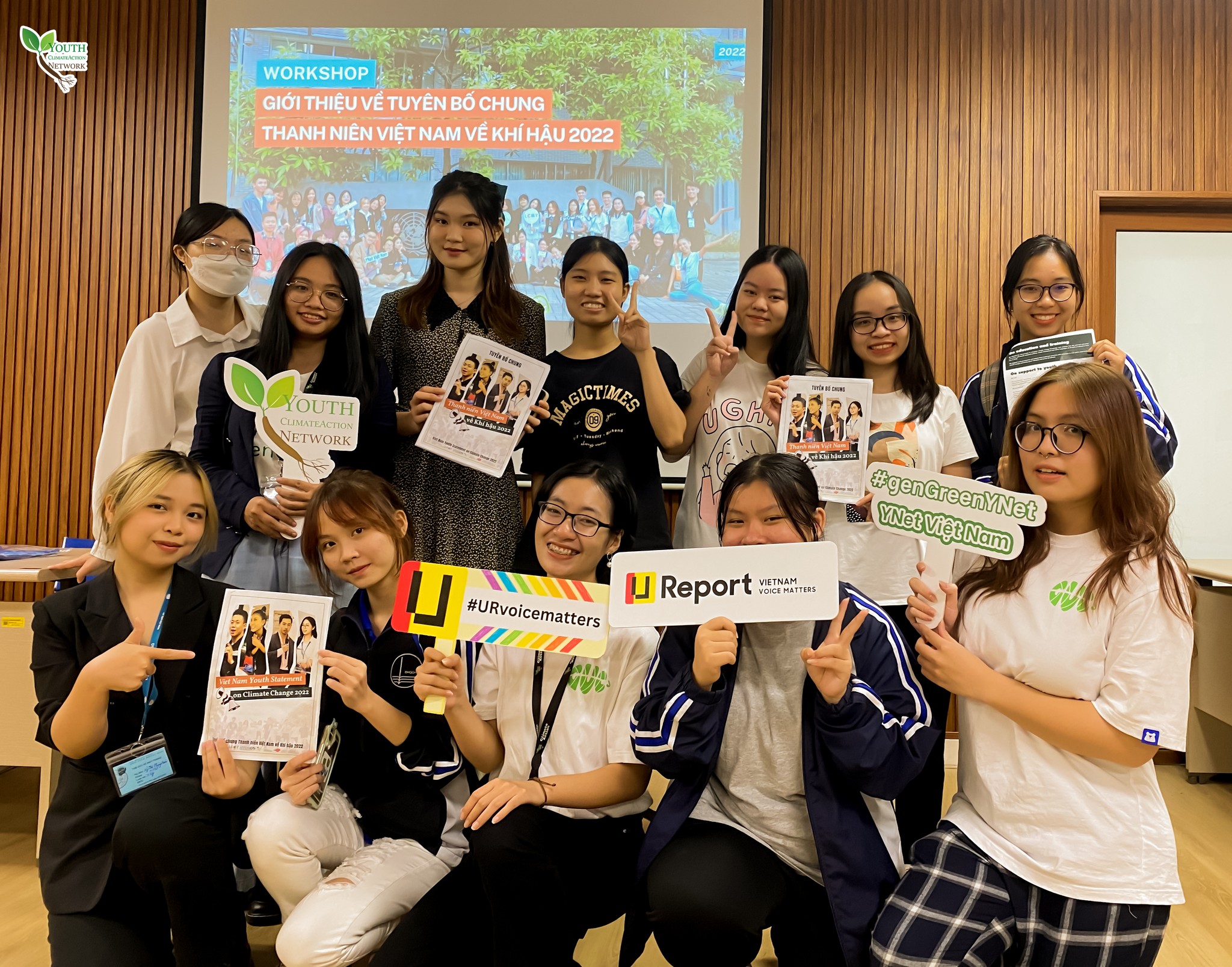 Giới thiệu về tuyên bố chung Thanh niên hành động vì khí hậu 2022 tại trường ĐH Ngoại ngữ Hà Nội. Ảnh YNET |