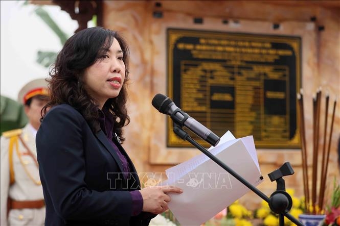 Thứ trưởng Bộ Ngoại giao Lê Thị Thu Hằng phát biểu tại buổi lễ. Ảnh: TTXVN |