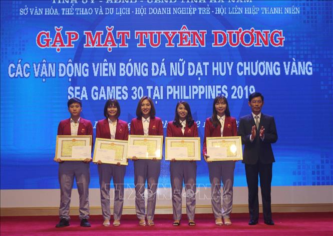 Chiều 13/12, Sở Văn hóa, Thể thao và Du lịch phối hợp với Hội Doanh nghiệp trẻ và Hội Liên hiệp Thanh niên Việt Nam tỉnh Hà Nam tổ chức gặp mặt, tuyên dương các vận động viên bóng đá nữ đạt Huy chương Vàng tại Đại hội Thể dục – Thể thao Đông Nam Á lần thứ 30 (SEA Games 30) vừa diễn ra tại Philippines.