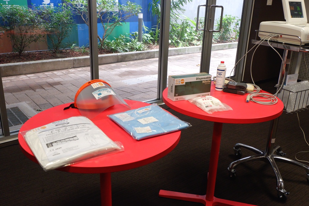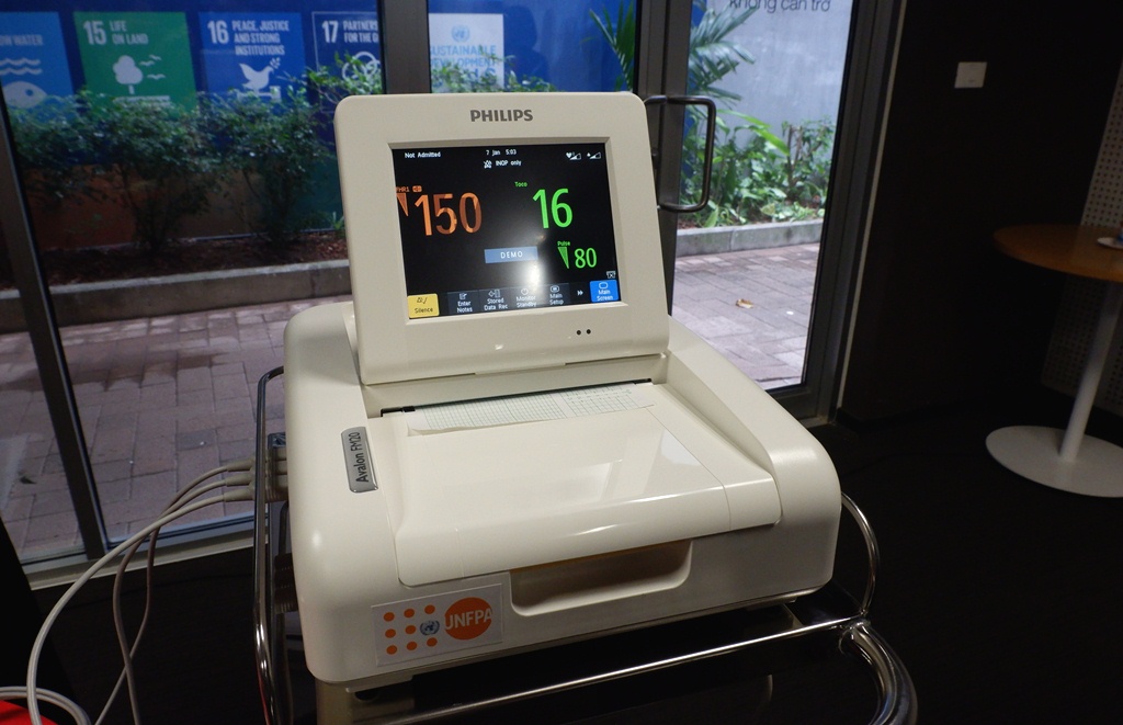 Các thiết bị bao gồm: 64 máy theo dõi tim thai cùng trang phục bảo hộ cá nhân như: quần áo bảo hộ, khẩu trang, kính chống giọt bắn bảo hộ…