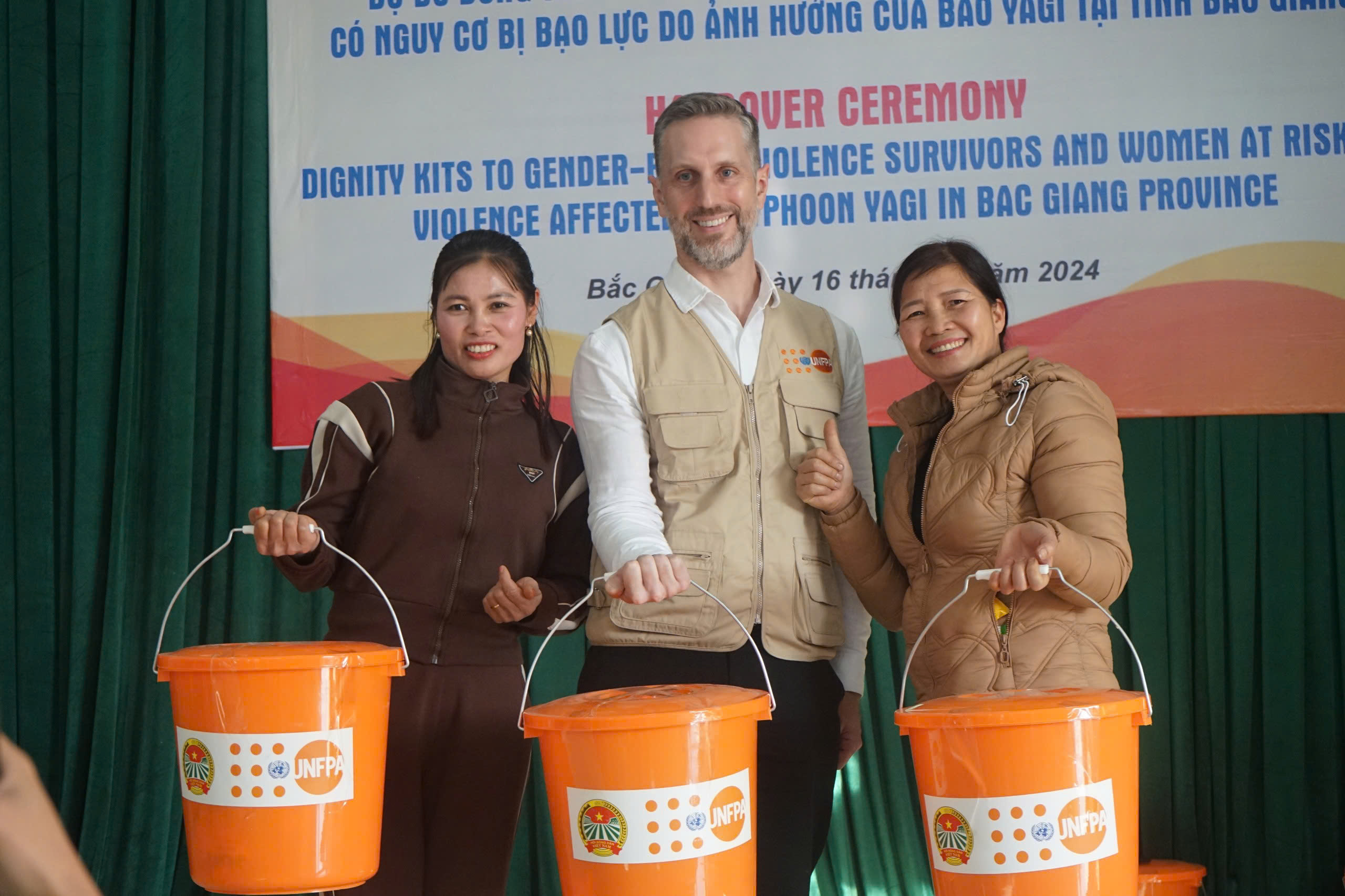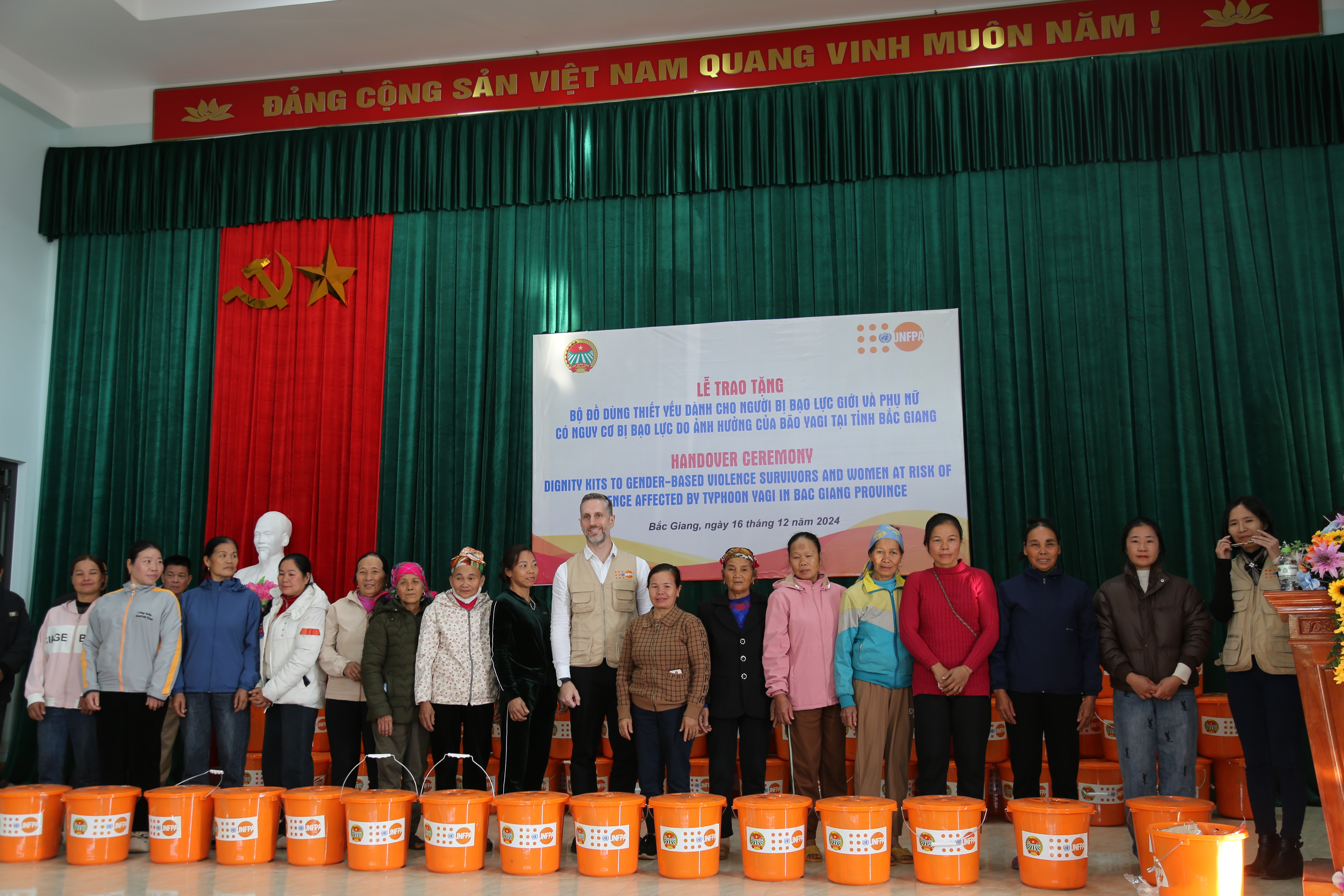 Số bộ đồ dùng thiết yếu này nằm trong tổng số 3,000 bộ đồ dùng mà UNFPA trao tặng thông qua Hội Nông dân Việt Nam tại 6 tỉnh thành chịu ảnh hưởng nặng nề bởi cơn bão Yagi bao gồm Lào Cai, Thái Nguyên, Quảng Ninh, Thái Bình, Bắc Ninh và Bắc Giang. Những bộ đồ dùng thiết yếu dành cho phụ nữ là một phần quan trọng trong gói hỗ trợ nhân đạo toàn diện của UNFPA nhằm bảo vệ sức khỏe sinh sản và quyền của phụ nữ và trẻ em gái, đồng thời giảm thiểu rủi ro bạo lực giới.