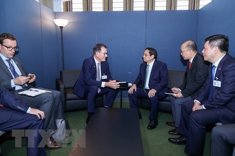 (VOV5) - Chiều qua (20/9, theo giờ địa phương), tại New York, Mỹ, Thủ tướng Phạm Minh Chính tiếp Tổng Giám đốc Tổ chức Phát triển công nghiệp Liên hợp quốc (UNIDO) Gerd Muller.