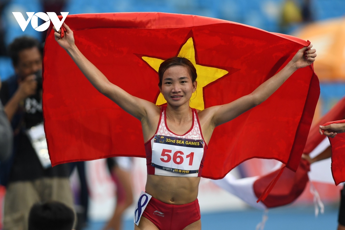 Một lần nữa, VĐV Việt Nam cán đích đầu tiên và giành HCV thứ 4 tại SEA Games 32 với thành tích 35 phút 11 giây.