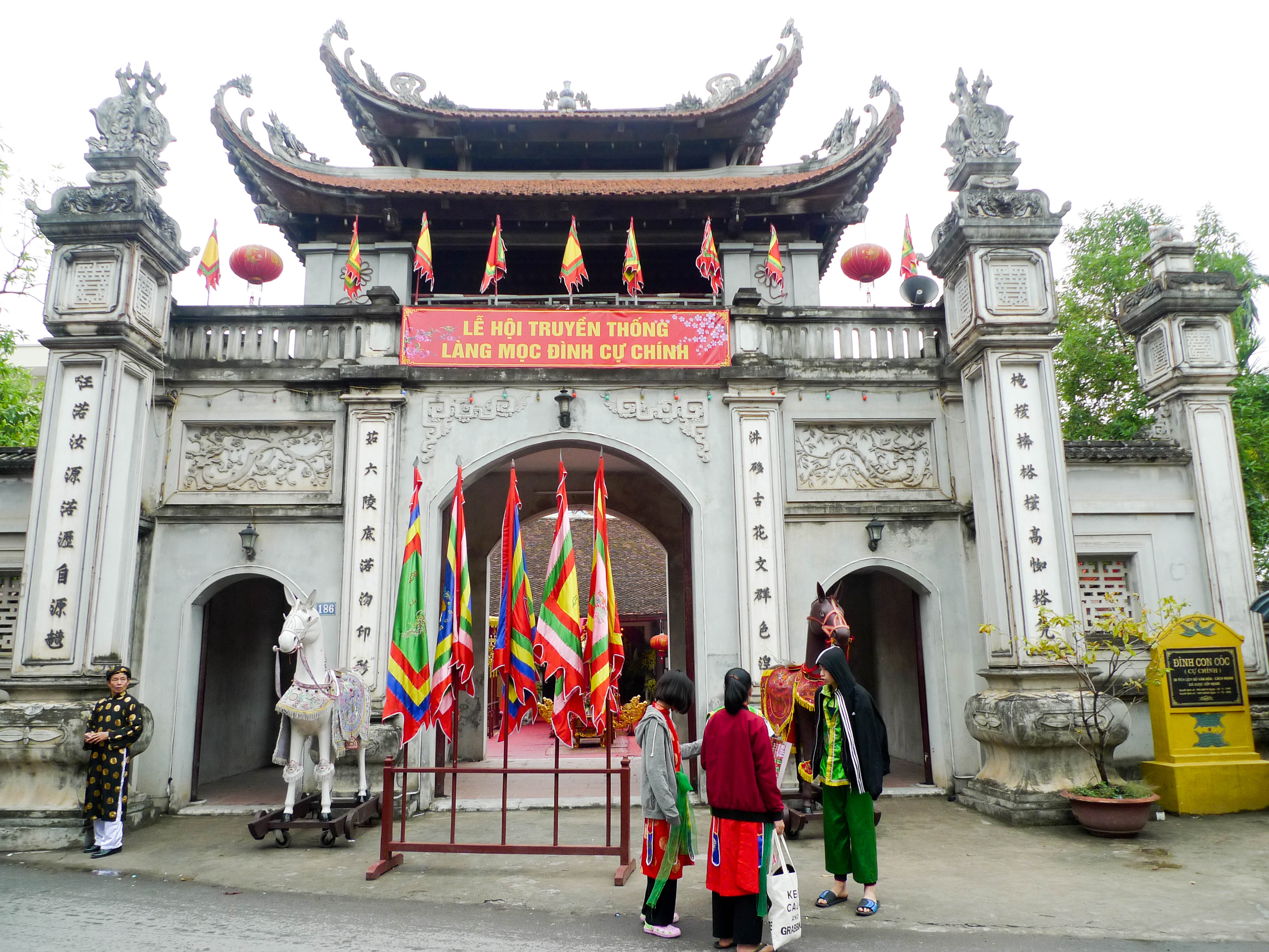 | Đình làng Cự Chính được trang hoàng trong ngày hội |