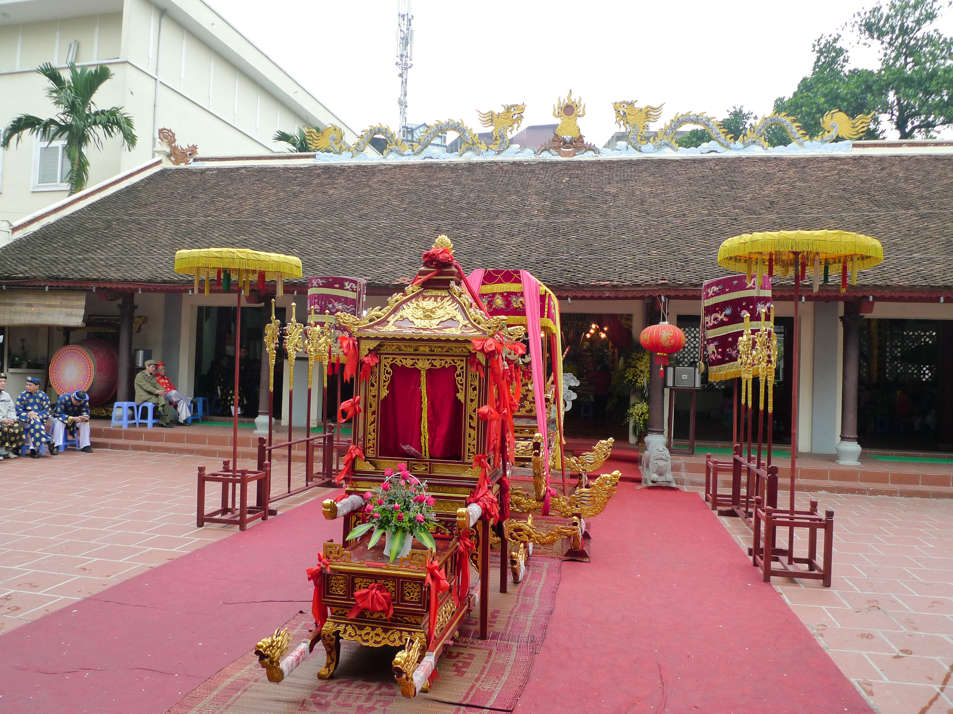 | Kiệu thành Hoàng làng Cự Chính trong sân đình “đón khách” |