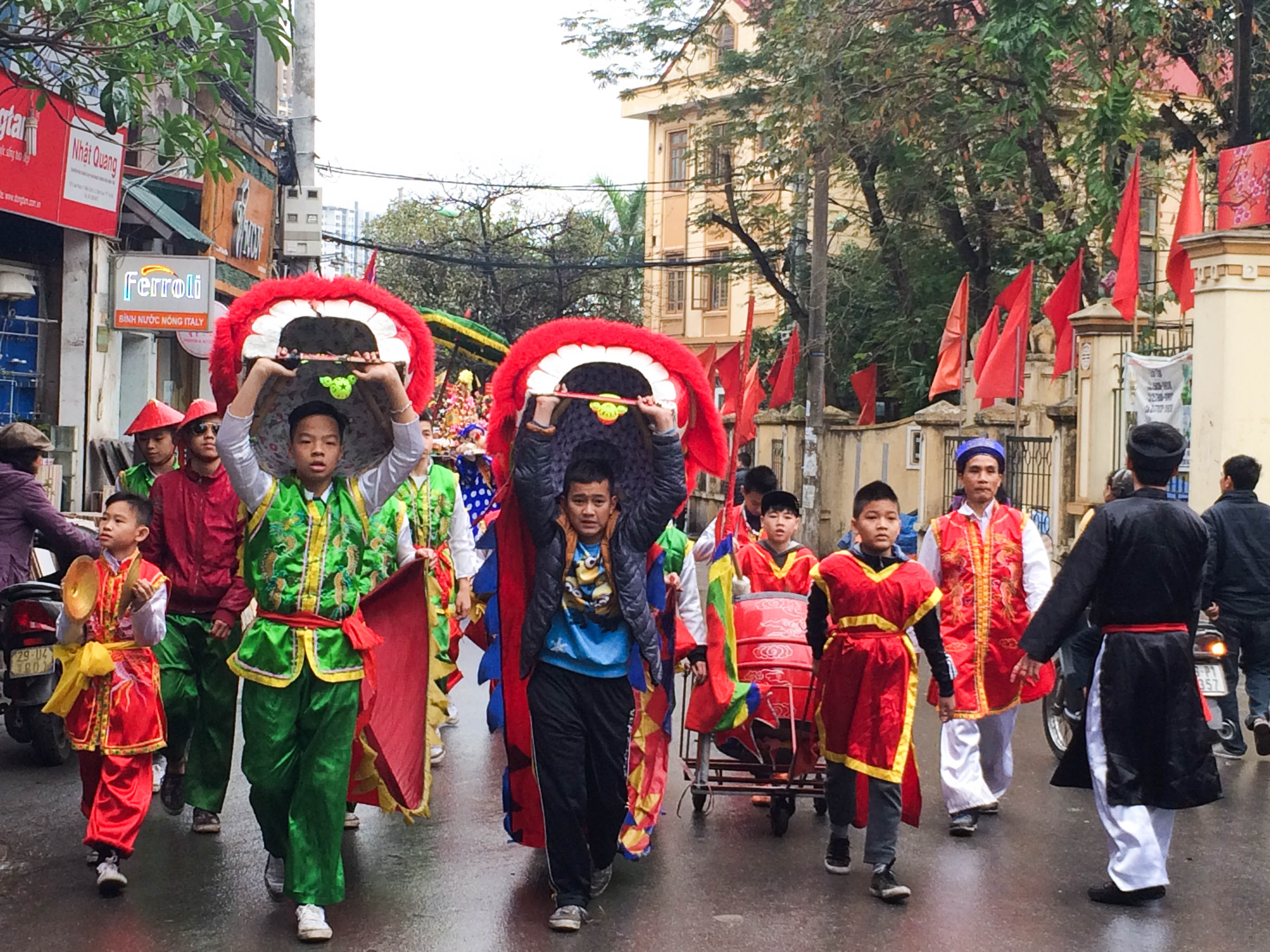 | Đội lân sư do các em nhỏ dẫn đầu đoàn rước |
