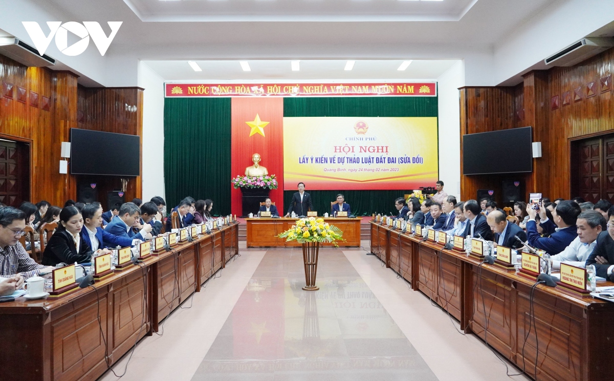 Sáng nay (24/02), tại thành phố Đồng Hới, tỉnh Quảng Bình, Phó Thủ tướng Trần Hồng Hà chủ trì Hội nghị Lấy ý kiến về dự thảo Luật Đất đai (sửa đổi) của 12 tỉnh, thành phố từ Thanh Hóa đến Phú Yên.