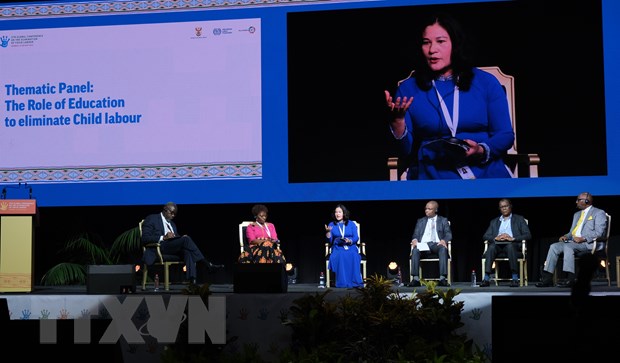 Trong khuôn khổ của Hội nghị toàn cầu lần thứ 5 về xóa bỏ lao động trẻ em đang diễn ra tại thành phố cảng Durban, Cộng hòa Nam Phi, ngày 17/05, đoàn đại biểu Việt Nam, do Thứ trưởng Bộ Lao động, Thương binh và Xã hội Nguyễn Thị Hà dẫn đầu, đã tham gia và có bài phát biểu tại phiên họp nêu bật tầm quan trọng của giáo dục đối với xóa bỏ lao động trẻ em.