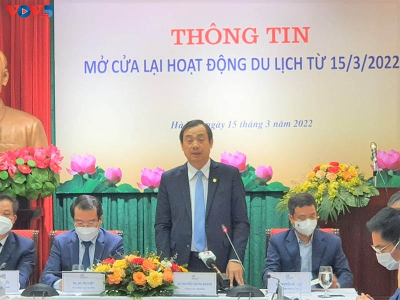 Chiều 15/3, Tổng cục trưởng Tổng cục Du lịch Nguyễn Trùng Khánh, công bố "Việt Nam chính thức mở cửa lại hoạt động du lịch trong điều kiện bình thường mới". Từ 15/3, khách du lịch quốc tế có thể đến Việt Nam thông qua đường bộ, đường biển, đường hàng không. Quy định nhập cảnh dựa trên hướng dẫn mới nhất của Bộ Y tế, áp dụng chung cho mọi đối tượng, không có quy định riêng cho khách du lịch. Bộ Văn hóa, Thể thao và Du lịch và Tổng cục Du lịch cũng đề nghị các địa phương mở cửa lại hoạt động du lịch, đón và phục vụ du khách theo từng cấp độ dịch. Khách Việt có thể du lịch nước ngoài, đảm bảo các quy định của Việt Nam và điểm đến.