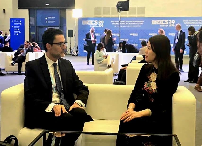 Sáng nay (11/6, theo giờ địa phương), tại thành phố Nizhny Novgorod, LB Nga, trong khuôn khổ Hội nghị Bộ trưởng Ngoại giao Nhóm các nền kinh tế mới nổi (BRICS) năm 2024, diễn ra Phiên “Đối thoại BRICS với các nước đang phát triển”. Với tư cách khách mời, Thứ trưởng Ngoại giao Nguyễn Minh Hằng dẫn đầu đoàn Việt Nam tham dự Phiên Đối thoại.