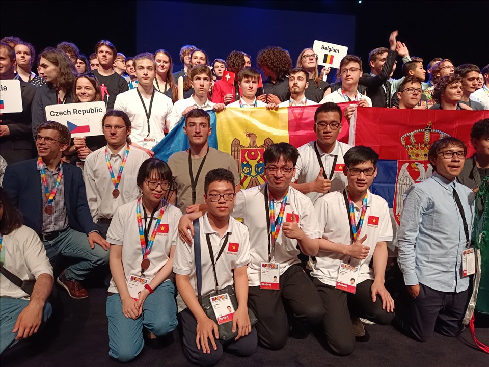 Đội tuyển Việt Nam tại lễ tổng kết kỳ thi Olympic Vật lý châu Âu (EuPhO) năm 2022. Ảnh: laodong.vn |