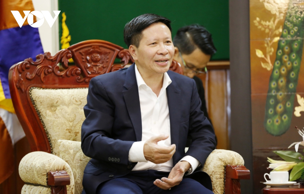 Nhân dịp này, Phó Tổng Giám đốc VOV cũng đã có buổi thăm và làm việc với Đại sứ đặc mệnh toàn quyền nước CHXHCNVN tại Campuchia Nguyễn Huy Tăng.