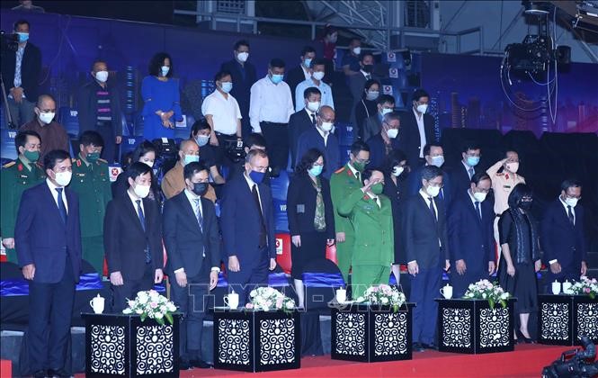 Các đại biểu đã dành một phút tưởng niệm những nạn nhân không may qua đời do tai nạn giao thông năm 2021 tại Việt Nam - Ảnh: Phạm Kiên/ TTXVN |