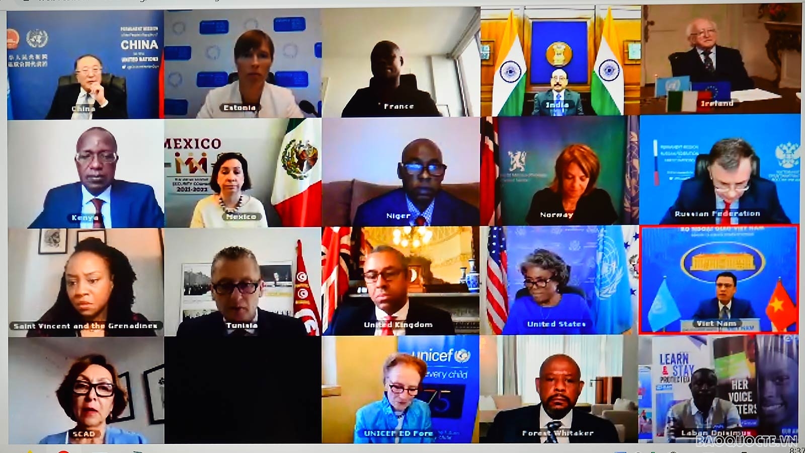 Tối 28/6, Thứ trưởng Bộ Ngoại giao Đặng Hoàng Giang tham dự và phát biểu tại Phiên thảo luận mở trực tuyến cấp cao của Hội đồng Bảo an Liên hợp quốc về chủ đề “Trẻ em và xung đột vũ trang” do Tổng thống Estonia Kersti Kaljulaid, Chủ tịch Hội đồng Bảo an tháng 6/2021, chủ trì.