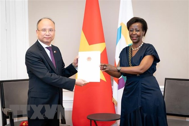 Đại sứ Việt Nam Đinh Toàn Thắng trình thư ủy nhiệm lên bà Tổng thư ký OIF Louise Mushikiwabo - Ảnh: OIF cung cấp |