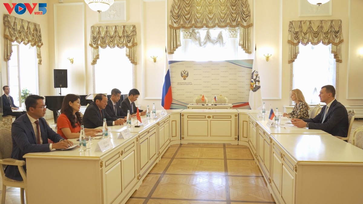 Buổi làm việc giữa Đoàn Bộ Văn hoá, Thể thao, Du lịch Việt Nam với Bộ Thể thao Liên bang Nga. Ảnh: PV/VOV-Moscow |