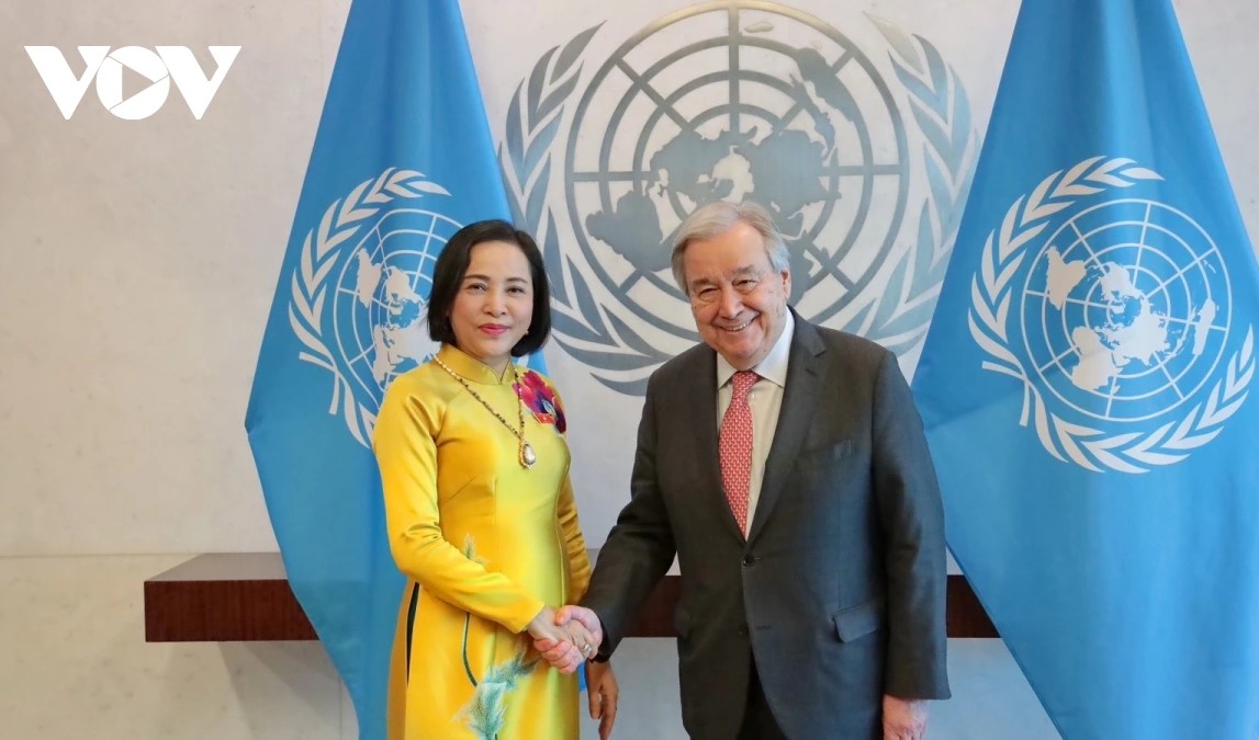 Phó Chủ tịch Quốc hội Nguyễn Thị Thanh gặp Tổng Thư ký Liên Hợp Quốc António Guterres. Ảnh: Phạm Huân/VOV-Washington |