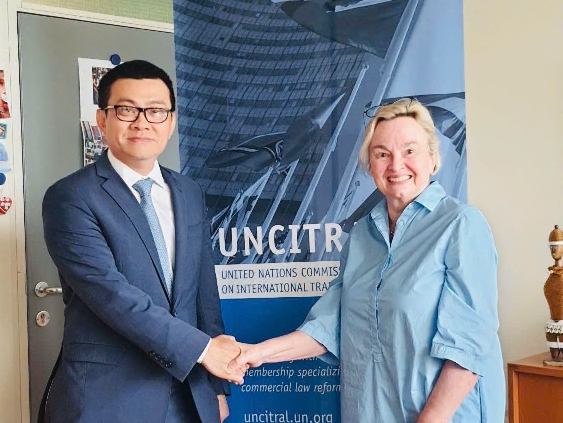 Tại cuộc gặp, hai bên trao đổi sâu rộng về quan hệ hợp tác giữa Việt Nam và Ủy ban Luật Thương mại Quốc tế của Liên hợp quốc (UNCITRAL) trên cơ sở Bản ghi nhớ hợp tác giữa Bộ Ngoại giao Việt Nam và Ban Thư ký UNCITRAL ký năm 2023. Bản ghi nhớ đặt nền tảng cho việc tăng cường hỗ trợ kỹ thuật và nâng cao năng lực pháp lý trong lĩnh vực thương mại quốc tế cho Việt Nam.