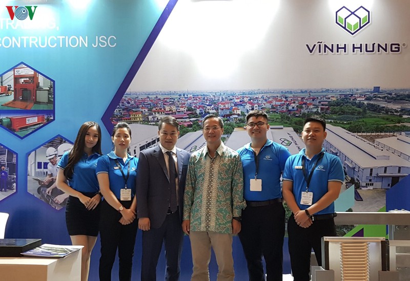 Gian hàng của Việt Nam có đại diện là Công ty cổ phẩn Thương mại, Tư vấn và Xây dựng Vĩnh Hưng, thu hút sự chú ý của khách tham quan hội chợ.