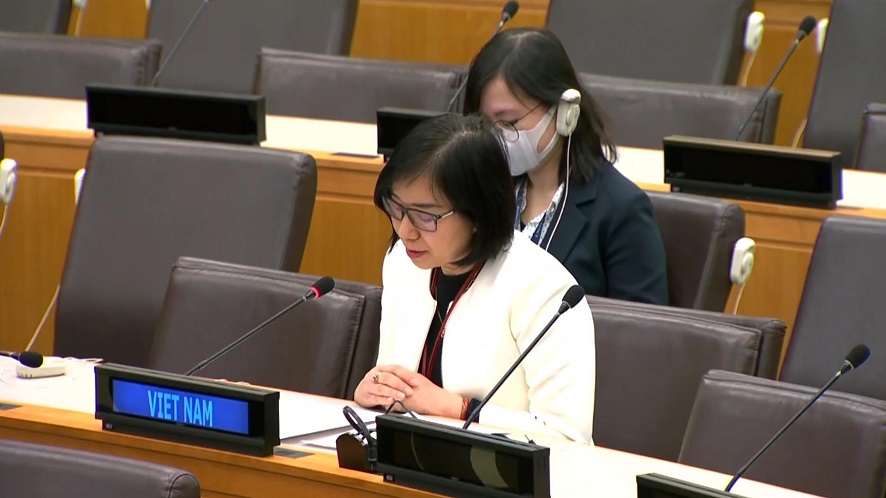 Phó Trưởng Phái đoàn thường trực Việt Nam tại Liên hợp quốc Nguyễn Phương Trà phát biểu. Ảnh: Phái đoàn Việt Nam tại Liên hợp quốc |