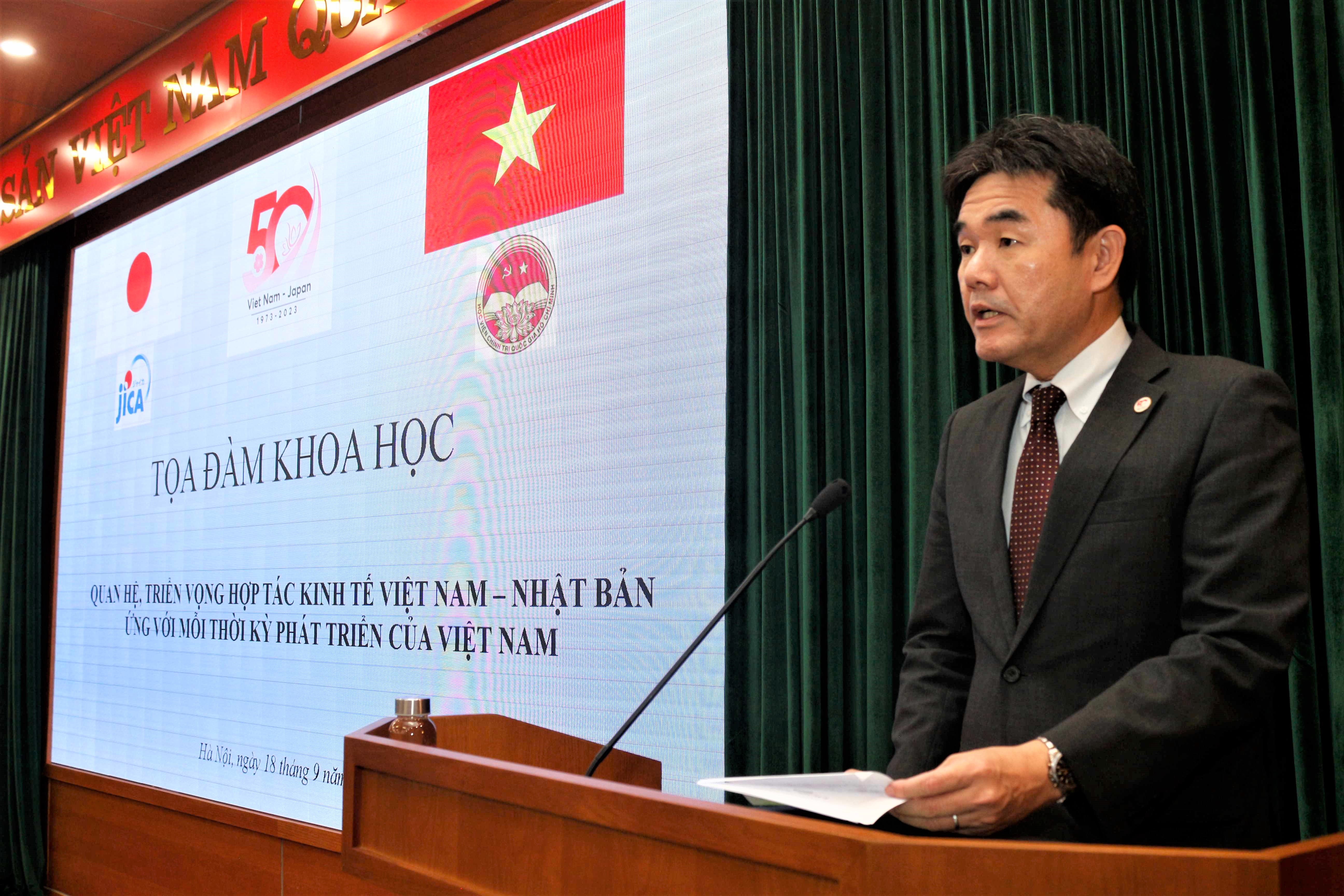 Ngày 18/09, tại Hà Nội, Học viện Chính trị Quốc gia Hồ Chí Minh (HCMA) phối hợp với Cơ quan Hợp tác Quốc tế Nhật Bản (JICA) tổ chức chuỗi sự kiện, gồm Thuyết trình và Tọa đàm chia sẻ tri thức và khoa học về “Quan hệ, triển vọng hợp tác kinh tế Việt Nam – Nhật Bản ứng với mỗi thời kỳ phát triển của Việt Nam” .