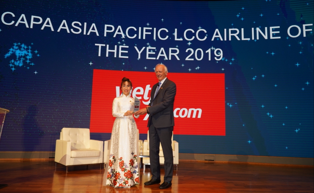 Hãng hàng không Vietjet vừa được Trung tâm hàng không châu Á - Thái Bình Dương (CAPA) trao giải thưởng “Hãng hàng không chi phí thấp của năm tại khu vực châu Á - Thái Bình Dương”.