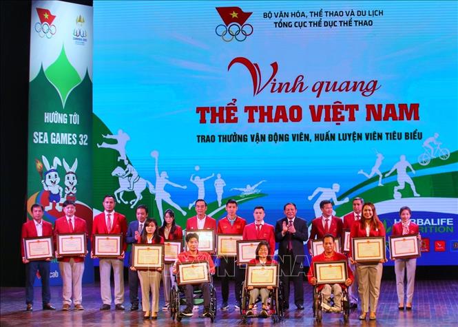 Trao bằng khen cho các huấn luyện viên, vận động viên tiêu biểu và huấn luyện viên, vận động viên người khuyết tật xuất sắc toàn quốc năm 2022. Ảnh: Tuấn Đức/TTXVN |