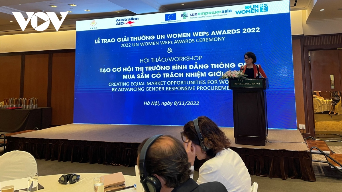 Lễ trao giải thưởng “Thực hiện nguyên tắc trao quyền cho phụ nữ” ghi nhận nỗ lực của những công ty có các sáng kiến, chương trình hành động thúc đẩy bình đẳng giới. Ảnh: VOV |