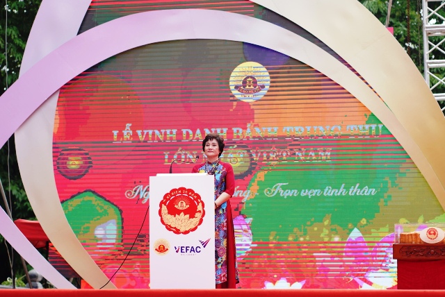Tham gia sự kiện và cùng các chị em kiều bào tặng quà cho các em nhỏ, bà Nguyễn Việt Triều, Ủy viên Liên hiệp hội người Việt toàn Châu Âu, Chủ tịch Hội phụ nữ Việt Nam tại Ba Lan chia sẻ: "Chúng tôi rất vinh dự và xúc động trước khi trở về Châu Âu được dự lễ vinh danh bánh trung thu kỉ lục Việt Nam. Chúng tôi rất may mắn khi được tham gia một hoạt động nhân ái trong khuôn khổ chương trình, đó là được gặp gỡ và tặng quà cho trẻ em mồ côi, trẻ em tàn tật có hoàn cảnh khó khăn. Chúng tôi hiểu hơn về những hoàn cảnh không may mắn của các bé, và mong rằng sau khi trở về Châu Âu, chúng tôi sẽ kêu gọi chị em phụ nữ ở Châu Âu chung tay hỗ trợ các cháu".