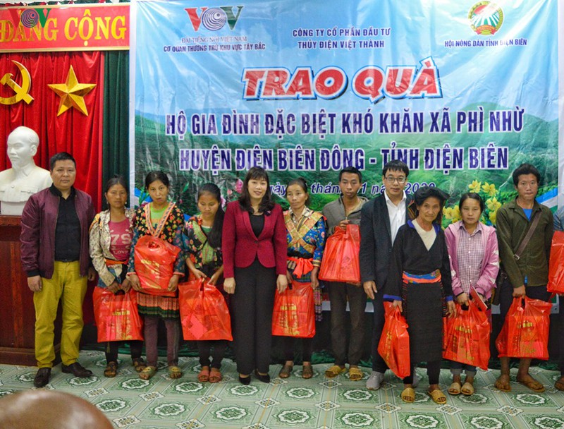 Sáng 13/1, Cơ quan thường trú Đài Tiếng nói Việt Nam khu vực Tây Bắc phối hợp với Hội nông dân tỉnh Điện Biên và Công ty Cổ phần đầu tư Thủy điện Việt Thành, trụ sở tại Hà Nội tổ chức trao tặng quà tết cho các hộ gia đình đặc biệt khó khăn tại xã Phì Nhừ, huyện Điện Biên Đông, tỉnh Điện Biên.