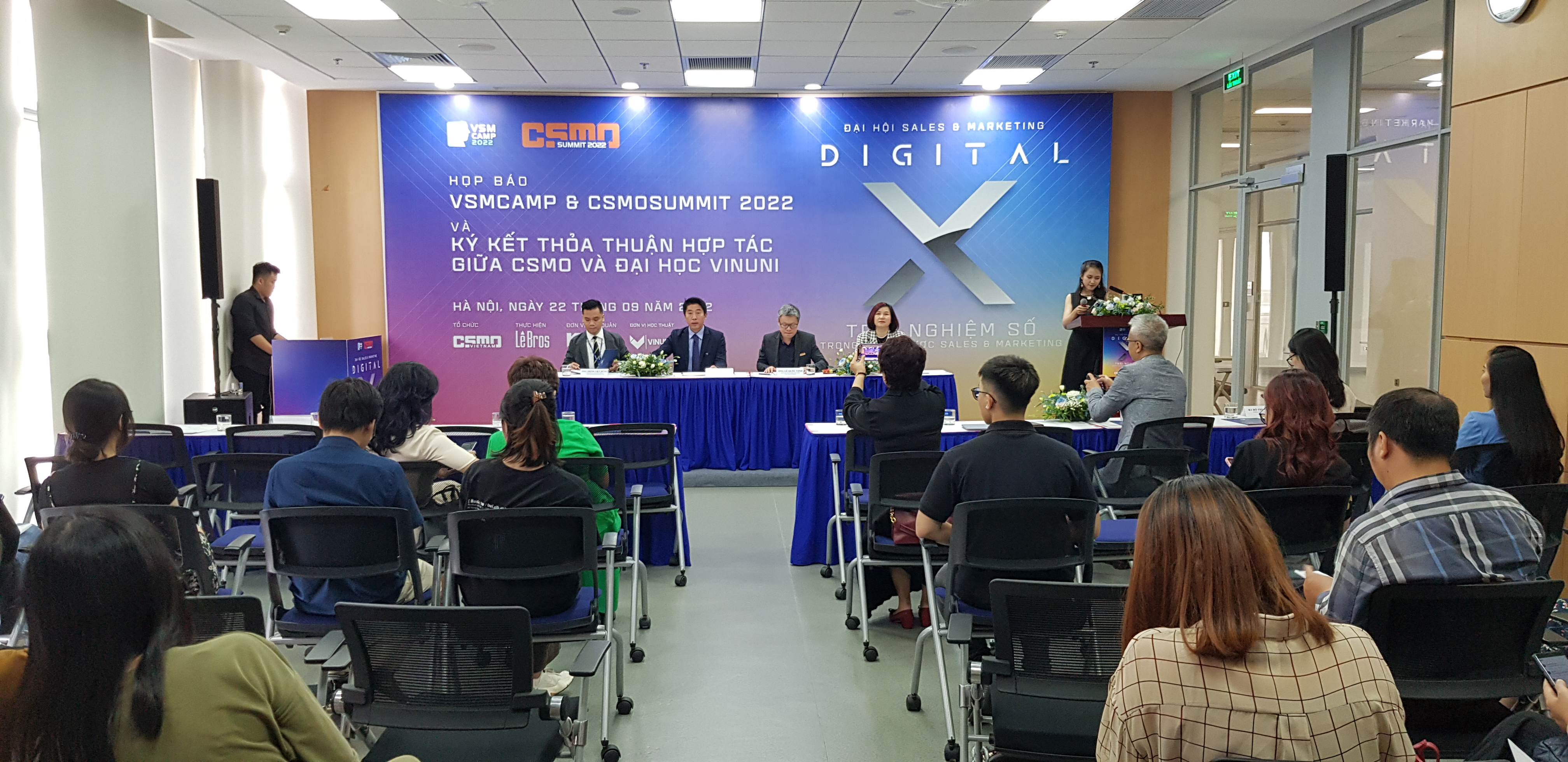 Sau thời gian gián đoạn bởi dịch COVID-19, Đại hội Sales và Marketing toàn quốc (VSMCamp) và Hội nghị cấp cao các Giám đốc Sales và Marketing (CSMOSummit) sẽ trở lại trong hai ngày 18/11/2022 và 19/11/2022, tại trường Đại học VinUni (VinUni), Hà Nội, với chủ đề “DigitalX - Trải nghiệm số trong chiến lược Sales & Marketing”. Dự kiến sự kiện sẽ thu hút 1.500 lượt khách tham gia. Thông tin này được đưa ra tại cuộc họp báo sáng 22/9/2022 tại Hà Nội trước thềm VSMCamp và CSMOSummit 2022.
