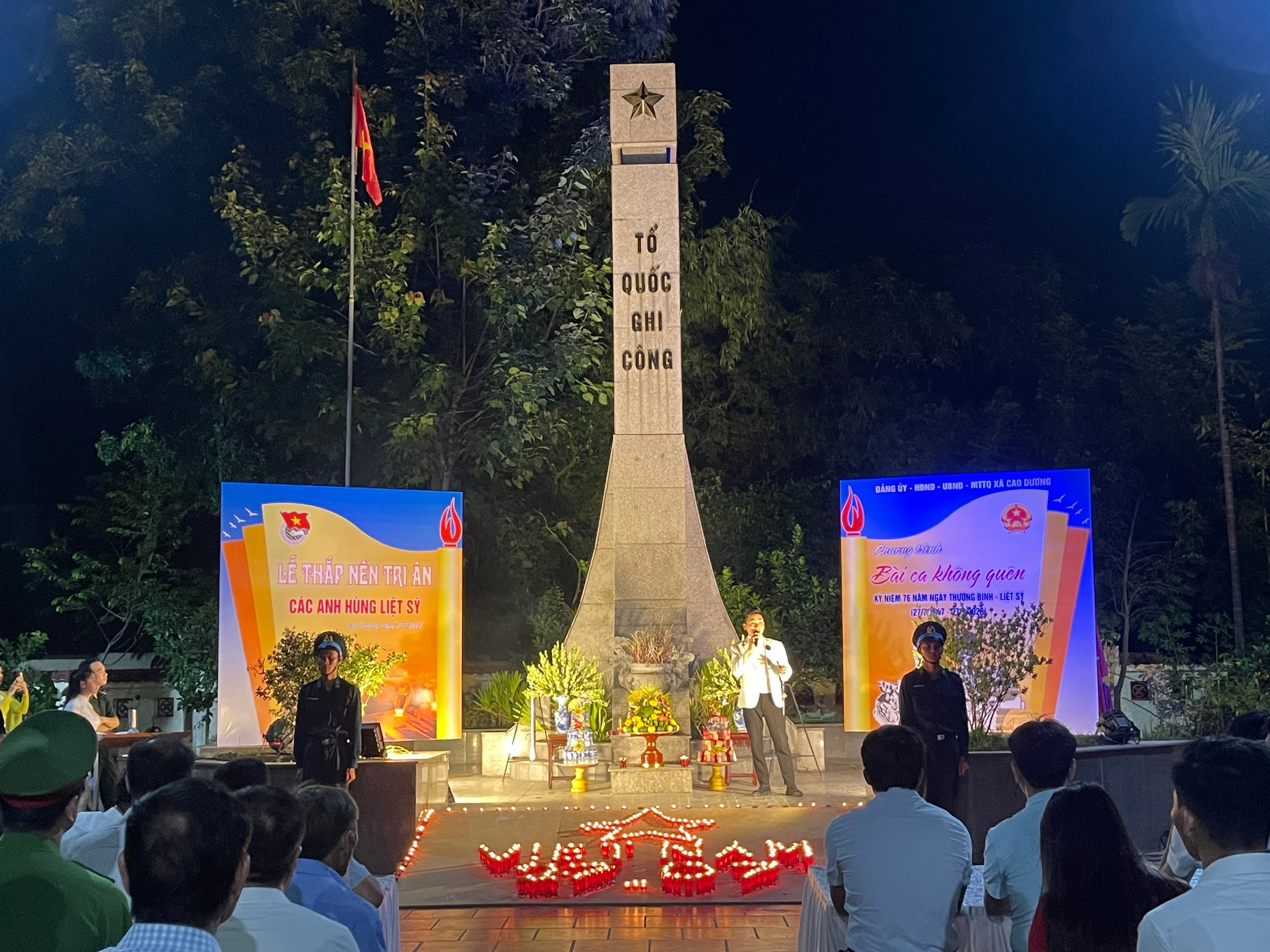 Hòa chung không khí kỷ niệm 76 năm ngày Thương binh - Liệt sỹ (27/7/1947 - 27/7/2023), tối ngày 26/7, tại Nghĩa trang liệt sỹ xã Cao Dương, huyện Thanh Oai, Hà Nội, Đảng ủy - HĐND - UBND - UBMTTQ xã Cao Dương phối hợp cùng với các ban ngành đoàn thể tổ chức Lễ thắp nến tri ân và đêm nhạc với chủ đề “Không bao giờ quên”.