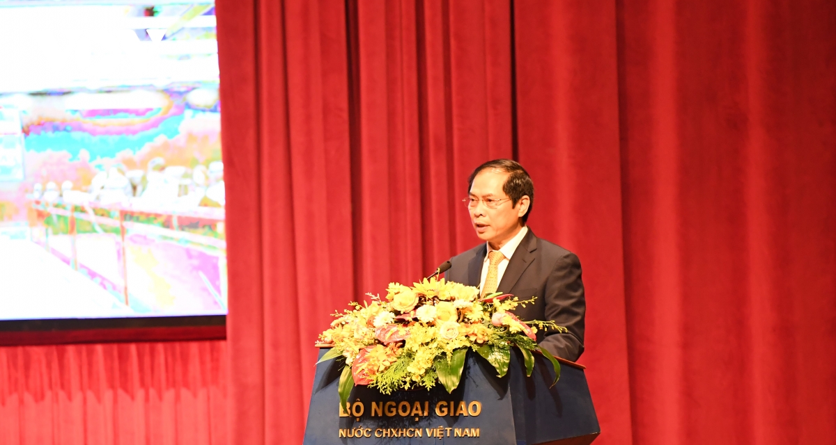 Phát biểu khai mạc hội nghị Bộ trưởng Bộ Ngoại giao Bùi Thanh Sơn nêu rõ 2 năm qua ngành Ngoại giao đã đạt được những kết quả quan trọng và toàn diện. Đó là giữ vững môi trường hòa bình, ổn định, góp phần quan trọng bảo vệ vững chắc độc lập, chủ quyền, thống nhất và toàn vẹn lãnh thổ, tiếp tục mở rộng và làm sâu sắc hơn quan hệ với nhiều đối tác, nhất là các nước láng giềng, các đối tác quan trọng và bạn bè thống, từ đó tranh thủ tối đa nguồn lực bên ngoài phục vụ cho phát triển kinh tế-xã hội.