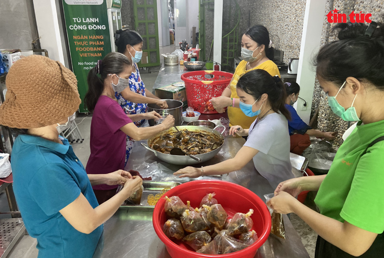 Theo ghi nhận của phóng viên báo Tin tức, từ 9 giờ sáng, bếp ăn trên đường số 2, phường Hiệp Bình Chánh, thành phố Thủ Đức (TP Hồ Chí Minh) đã bắt đầu nhộn nhịp. Các tình nguyện viên tất bật, cùng nhau nấu khoảng 1.500 phần cơm để gửi đến những người khó khăn do ảnh hưởng bởi dịch COVID-19.