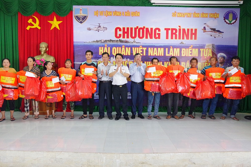 The Command gave 100 gifts to disadvantaged fishermen at Phan Thiet fishing port and national flags, lifebuoys, and other necessities to owners of fishing boats, organized free medical check-ups, and gave free medicines to the fishermen.