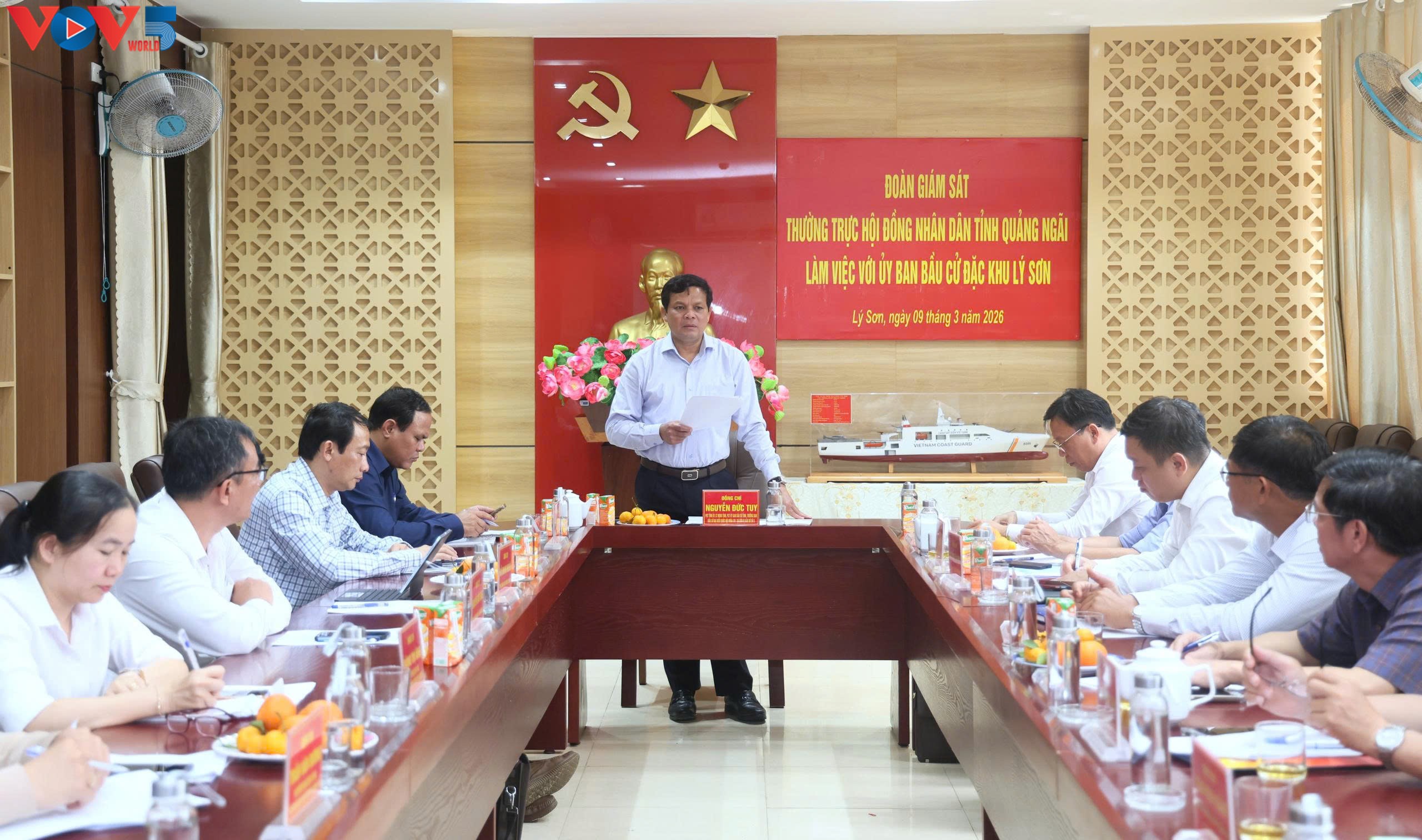 A supervisory delegation of the Quang Ngai Provincial People’s Council works with the Ly Son election committee. (Photo: Thanh Thang/VOV) |