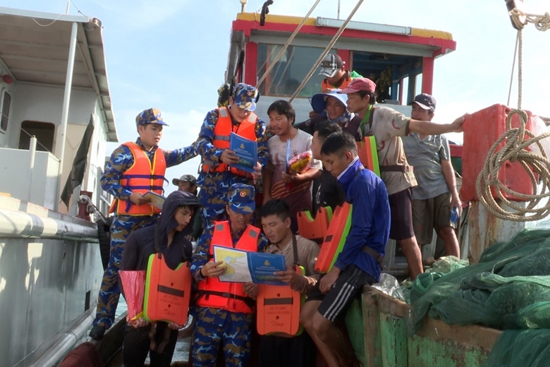 Fishermen were told about prohibited acts when harvesting seafood, penalties for violations in the fisheries sector, and cases in which fishermen violate Vietnamese law, international law, or the law of another country.